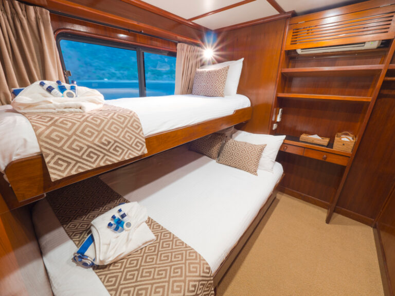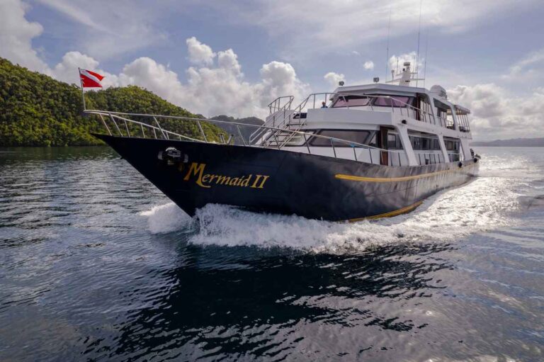 M/V Mermaid II to 33-metrowy, stalowy jacht motorowy z dwoma silnikami. Jeden z najwygodniejszych jachtów nurkowych w Azji, z łatwością pomieści 18 gości w 8 kabinach deluxe oraz 2 osoby w kabinie budżetowej na dolnym pokładzie. Wszystkie kabiny deluxe znajdują się na pokładzie głównym i oferują do wyboru konfigurację z łóżkiem podwójnym lub dwoma pojedynczymi łóżkami.