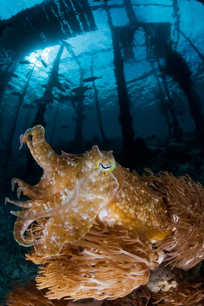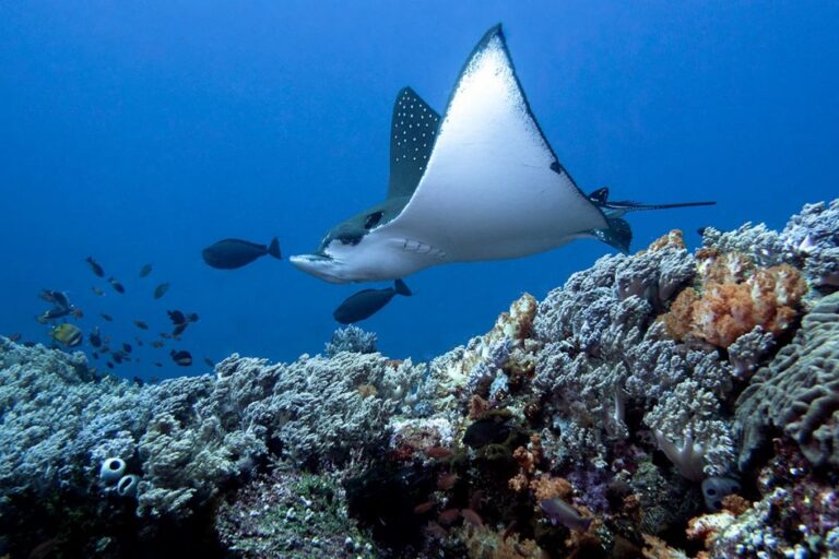 Słynne Dampier Strait – 4 nurkowania. Cieśnina Dampier znajduje się pomiędzy Waigeo a Półwyspem Bird’s Head. Obok Misool, jest to najpopularniejszy obszar nurkowy w Raja Ampat. Wszystkie miejsca nurkowe wokół Cieśniny Dampier słyną z ogromnej liczby ławic ryb – barakud, ławic karanksów wielkookich, rogatnic oceanicznych, szpadnic, pokolców i lucjanów. Można tu również zobaczyć rekiny rafowe czarnopłetwe i białopłetwe oraz słynne rekiny wobbegong. W Cieśninie Dampier znajdują się również jedne z najlepszych miejsc do nurkowania z mantami. Blue Magic to niewielki szczyt, na którym gromadzą się i oczyszczają ogromne manty. W Cieśninie Dampier, wokół wysp Yanggefo i Gam, znajdują się jedne z najlepszych miejsc do nurkowania w namorzynach. Oczywiście nie można zapomnieć o miejscach nurkowych przy niektórych molach przed lokalnymi wioskami, gdzie filary pokryte są miękkimi koralowcami i stanowią dom dla niezliczonych ilości małych stworzeń. Inne fantastyczne miejsca nurkowe w tym rejonie to Cape Kri, Sardine Reef, Chicken Reef, Mioskon, Mike’s Point, Mangrove Ridge i Citrus Ridge.