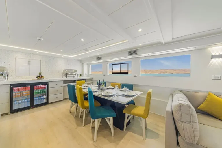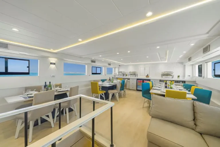 Pierwsza łódź będąca urzeczywistnieniem najnowszej generacji i elegancji. Dzięki wieloletniemu doświadczeniu i wiedzy opartej na supernowoczesnych standardach powstała łódź niezrównana w swojej szybkości, stabilności, komforcie i przestronności. Posiada 11 dwuosobowych kabin (3 kabiny z łóżkami podwójnymi i 8 kabin z dwoma łóżkami pojedynczymi), każda wyposażona w łaziankę oraz indywidualnie sterowaną klimatyzację. Swoim Gościom zapewnia miękkie ręczniki oraz ciepłe szlafroki. Na głównym pokładzie znajduje się przytulny salon oraz część jadalna oddzielona od niego. Salon jest w pełni wyposażony w zaplecze rozrywkowe m.in. DVD, TV, CD i małą biblioteczkę. Dwa zacienione pokłady słoneczne są miejscami, gdzie pomiędzy nurkowaniami będzie można się zrelaksować. Pokład nurkowy zapewnia wystarczająco dużo miejsca dla wygody nurków, posiada miejsce na butle, skrzynki na sprzęt oraz dwie ogólnodostępne łazienki. Łódź wyposażona jest w sprężarki do nabijania butli powietrzem oraz Nitroxem. W swoim wyposażeniu ma także apteczkę pierwszej pomocy, zestaw tlenowy, radio, radar, telefon satelitarny, nawigację oraz GPS. Łódź oferuje darmowy dostęp do Wi-Fi, Nitrox (w ofertach promocyjnych) oraz nielimitowane napoje bezalkoholowe. Szybka, zwinna, zwrotna. Taka jest łódź Sea Serpent!